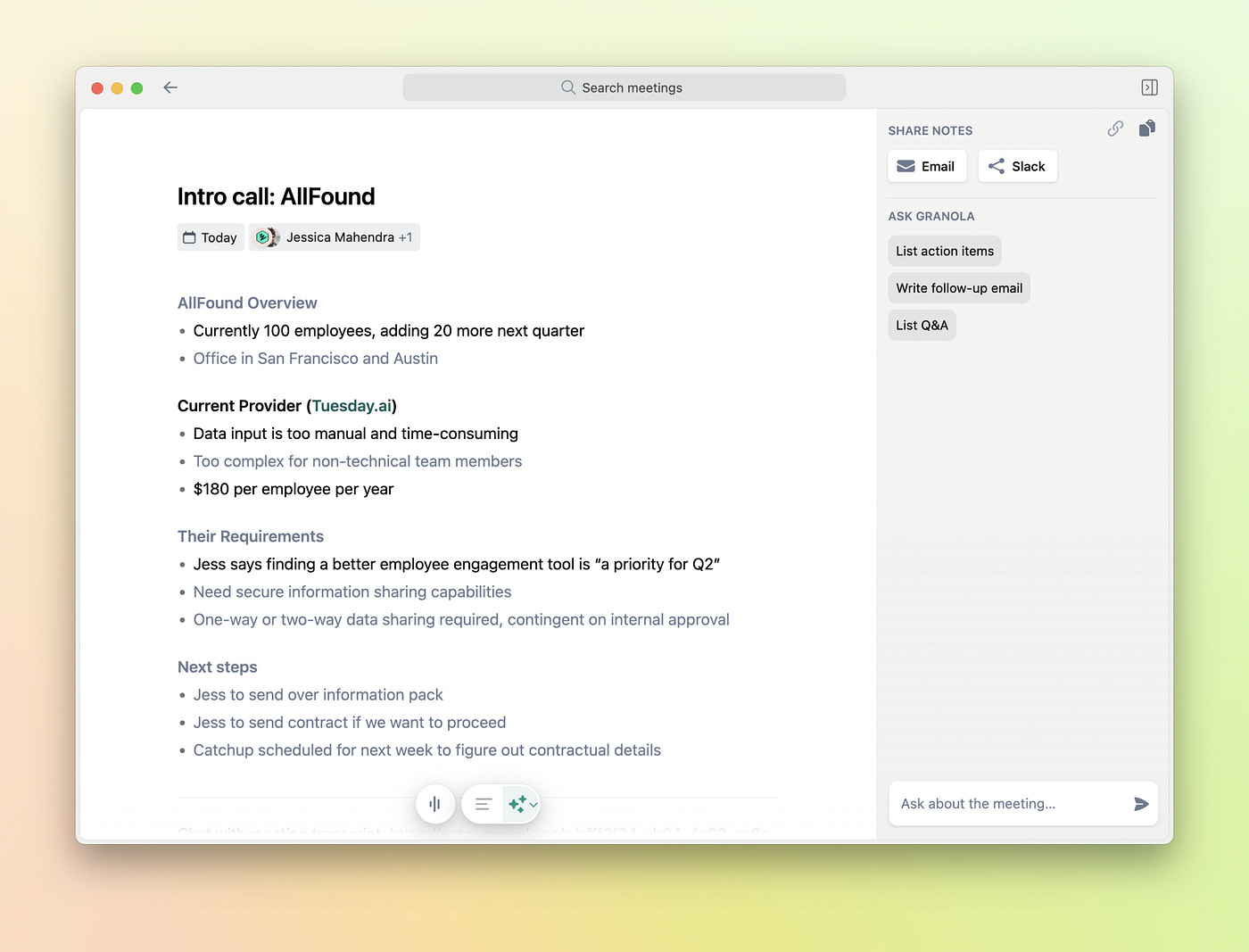 Granola’s invisible AI sets new standards for product design. Granola’s 70% retention shows the power of AI that enhances—rather than replaces—human workflows. By prioritizing user agency, iterative design, and trust, Granola quietly transforms note-taking into a “second brain” for teams. Often the best AI products are the ones users barely notice