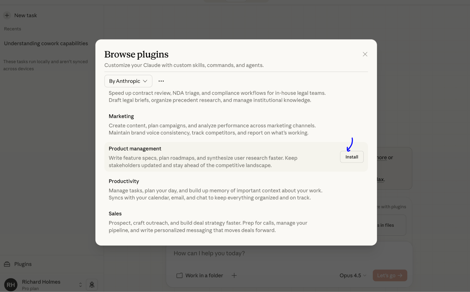 Claude Product Management plugin. PM use cases: Feature specs & PRDs, Roadmap planning, Stakeholder updates, User research synthesis, Competitive analysis